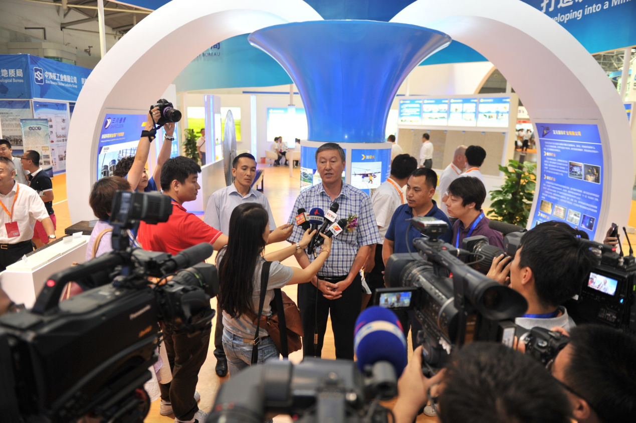 吉爾吉斯共和國地質(zhì)礦產(chǎn)資源蜀國務(wù)秘書蘇坦諾夫在礦博會(huì)會(huì)場接受媒體采訪