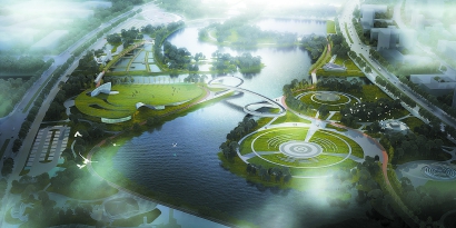 公園還特別設(shè)計(jì)了一塊占地3萬平方米的海綿科普區(qū),集中展示“海綿”吸納功能。在這里,河水要層層“闖關(guān)”:經(jīng)過沉淀池,流向生態(tài)綠地,到濕地,再進(jìn)入生態(tài)塘,最后回流入河道。經(jīng)過層層過濾,5類水也能凈化到3類水。根據(jù)計(jì)算,這片區(qū)域每天可以消納1.5萬立方米來自周圍的雨水。
