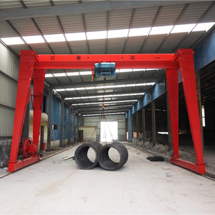 它的金屬結構像門形框架,承載主梁下安裝兩條支腳,可以直接在地面的軌道上行走,主梁兩端可以具有外伸懸臂梁。